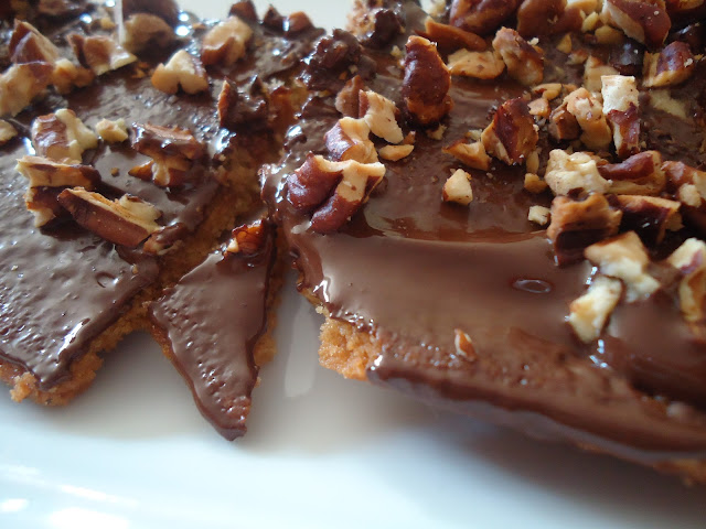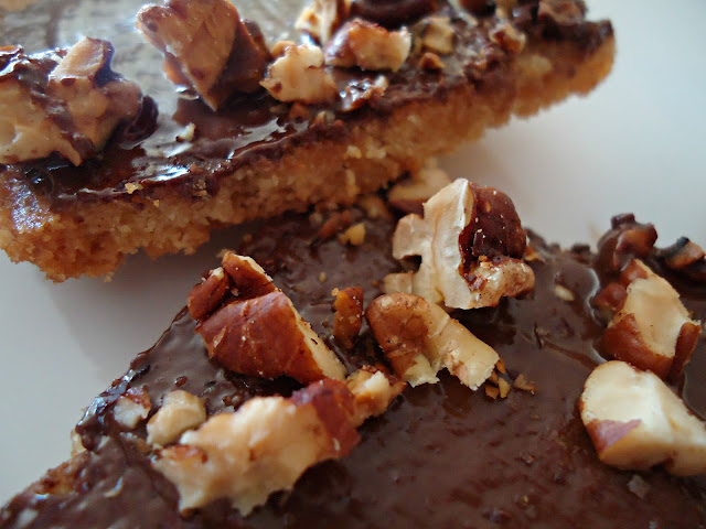 One could ask how a cookie can be both chewy and crunchy? The pecan topping gives the crunch while the almond flour and brown sugar crust make the cookie soft and irresistible. It's hard to believe that these chewy, chocolaty and delicious cookies are gluten and dairy free! We decided to substitute the all-purpose flour with almond flour. If you have never tried almond flour, here is your chance. We believe it gives the dessert a chewy texture with a nutty taste and is a great flour substitute in dessert related crusts. These squares are very versatile (another reason why we loved them) so we made some changes to the original recipe for our taste but we will add other options in brackets.